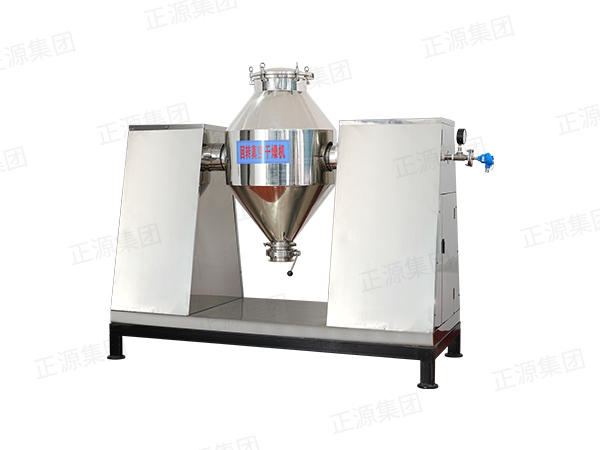 1、將粉末或粒裝物料通過(guò)真空輸送或人工加料到雙錐容器中,隨著容器的不斷旋轉(zhuǎn),物料在容器中進(jìn)行復(fù)雜的撞擊運(yùn)動(dòng),達(dá)到均勻的混合。